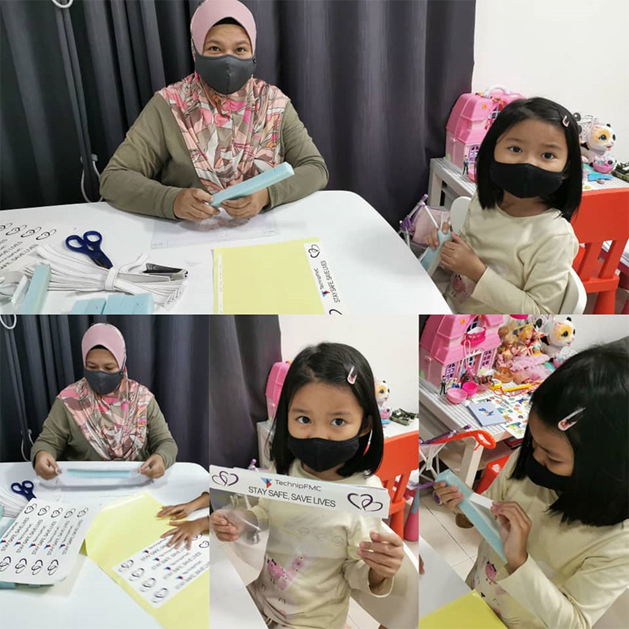About 60 volunteers and family members joined the “Do-It-Yourself Face Shield” effort organized by the sustainable development committee at the plant in Pasir Gudang, Malaysia.